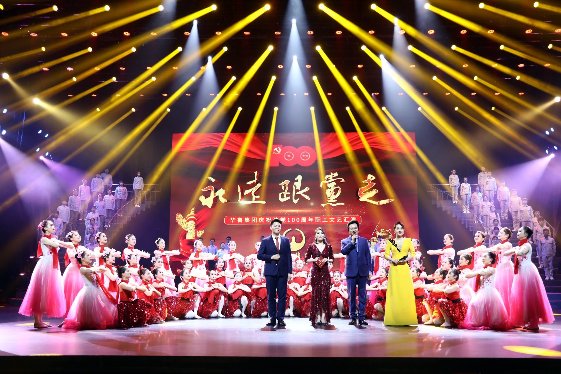 歌舞激揚,禮贊豐功偉績;黨旗飄揚,引領未來輝煌。6月5日下午,華魯集團慶祝建黨100周年職工文藝匯演《永遠跟黨走》在山東省會大劇院隆重舉行。演出以永遠跟黨走、初心使命、時代擔當、開創(chuàng)未來為主線,通過歌舞演繹、情景表演、詩歌朗誦等形式,獻上近2萬名華魯員工對黨的熱愛之情,堅定永遠跟黨走的磐石之心,激發(fā)為黨的事業(yè)奮斗終身的磅礴之力。