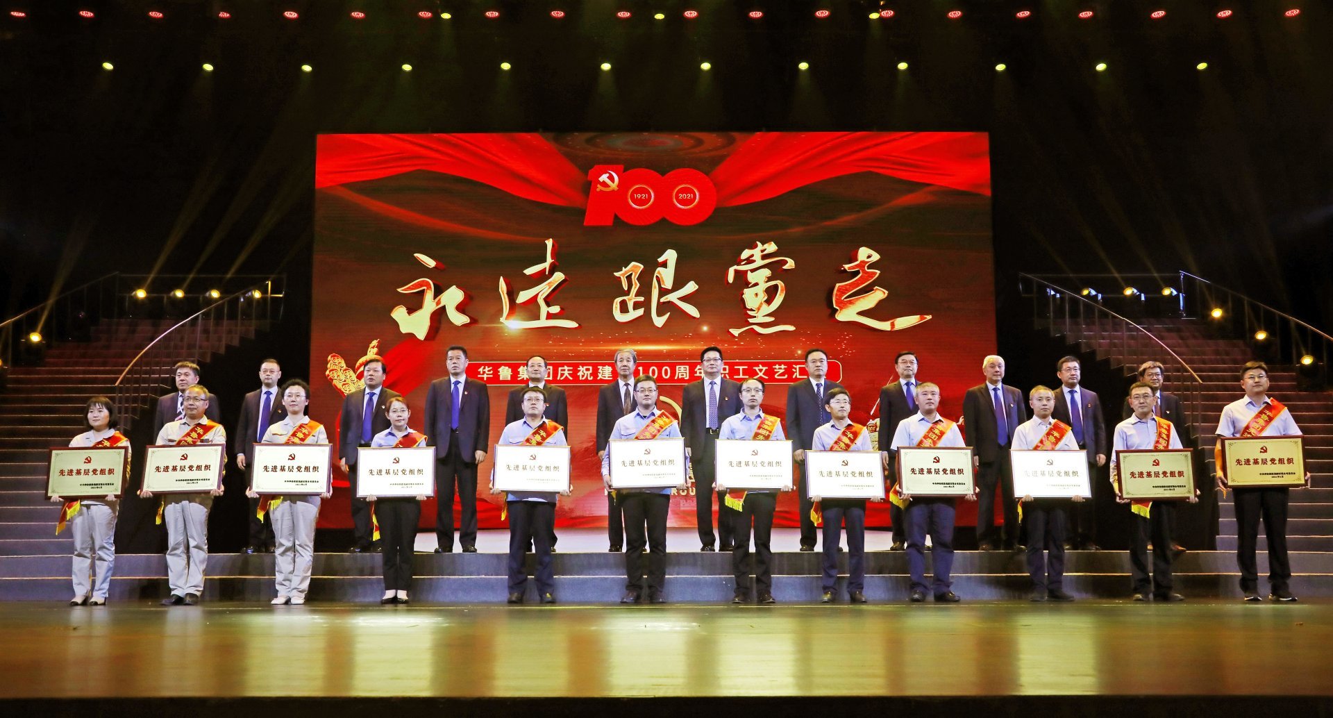 匯演前,舉行了華魯集團“兩優(yōu)一先”表彰活動。經(jīng)集團黨委批準,表彰了100名優(yōu)秀共產(chǎn)黨員、30名優(yōu)秀黨務工作者和20個先進基層黨組織,現(xiàn)場進行頒獎儀式。