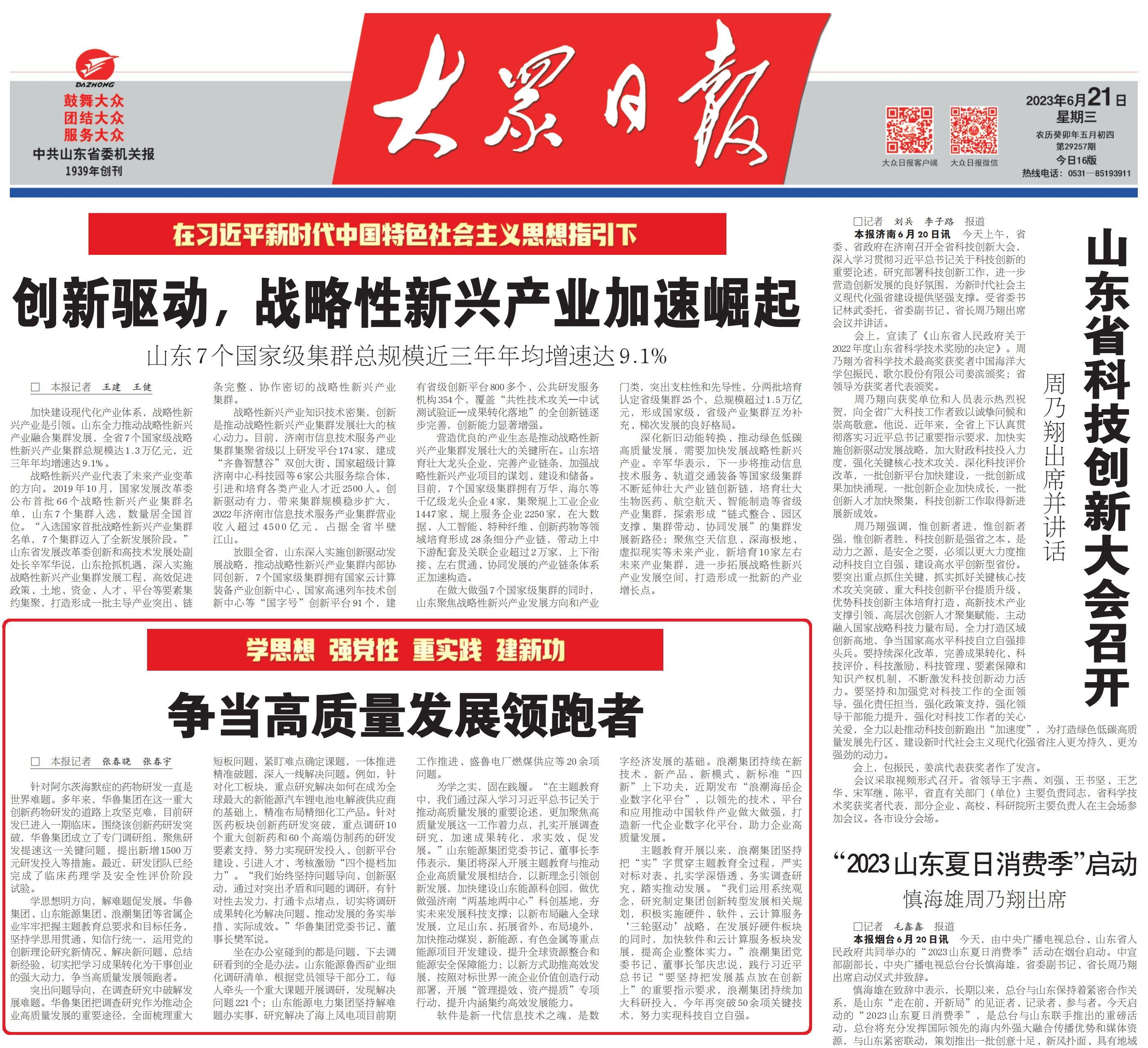 學(xué)思想明方向,解難題促發(fā)展。華魯集團(tuán)、山東能源集團(tuán)、浪潮集團(tuán)等省屬企業(yè)牢牢把握主題教育總要求和目標(biāo)任務(wù),堅(jiān)持學(xué)思用貫通、知信行統(tǒng)一,運(yùn)用黨的創(chuàng)新理論研究新情況、解決新問題、總結(jié)新經(jīng)驗(yàn),切實(shí)把學(xué)習(xí)成果轉(zhuǎn)化為干事創(chuàng)業(yè)的強(qiáng)大動(dòng)力,爭當(dāng)高質(zhì)量發(fā)展領(lǐng)跑者。